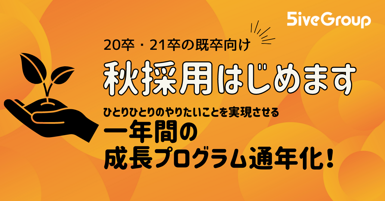 卒 21卒を中心とした コロナ禍の既卒向け秋採用 をファイブグループが初導入 春入社の21卒 と同一の年間育成プログラムを10月開始で実施 株式会社ファイブグループのプレスリリース